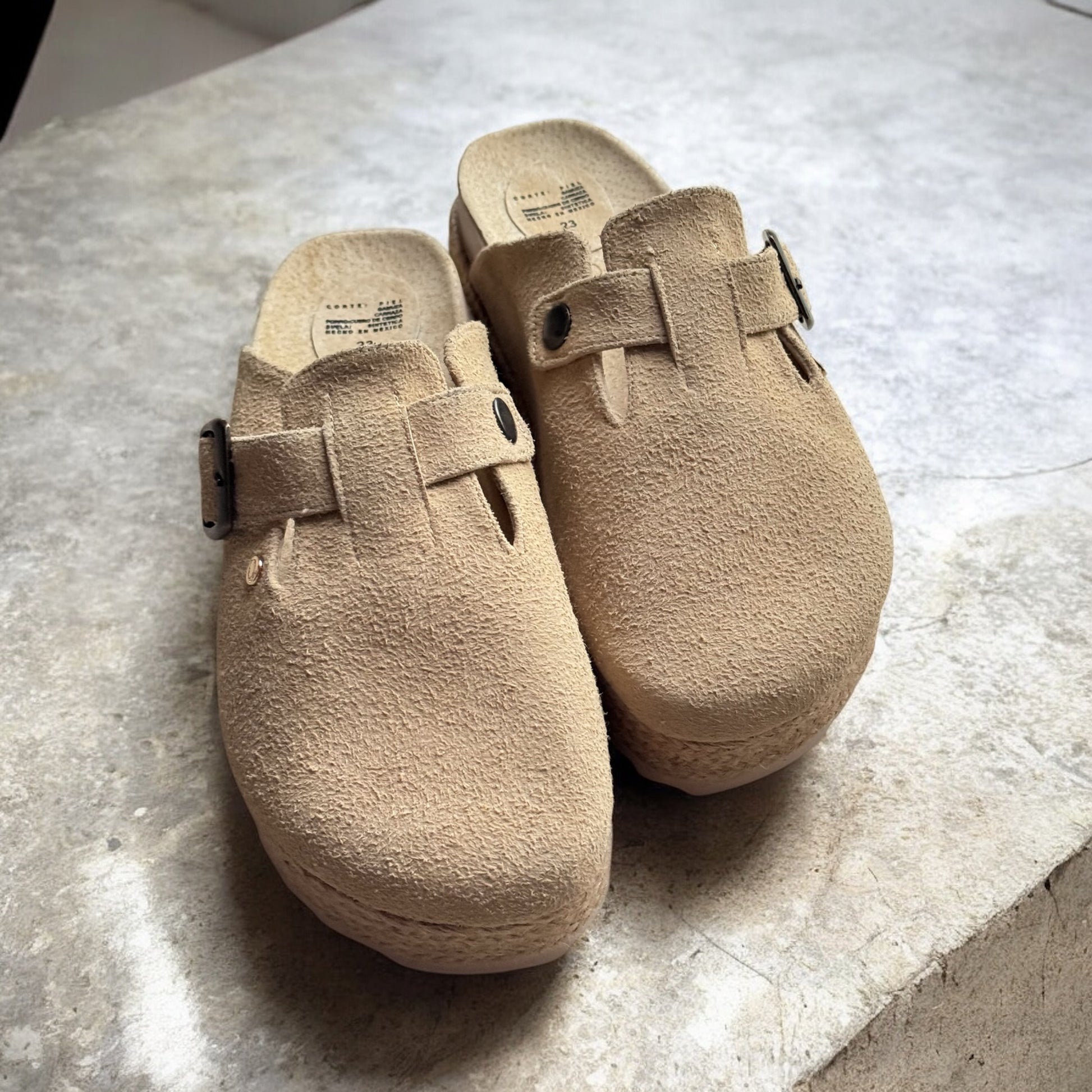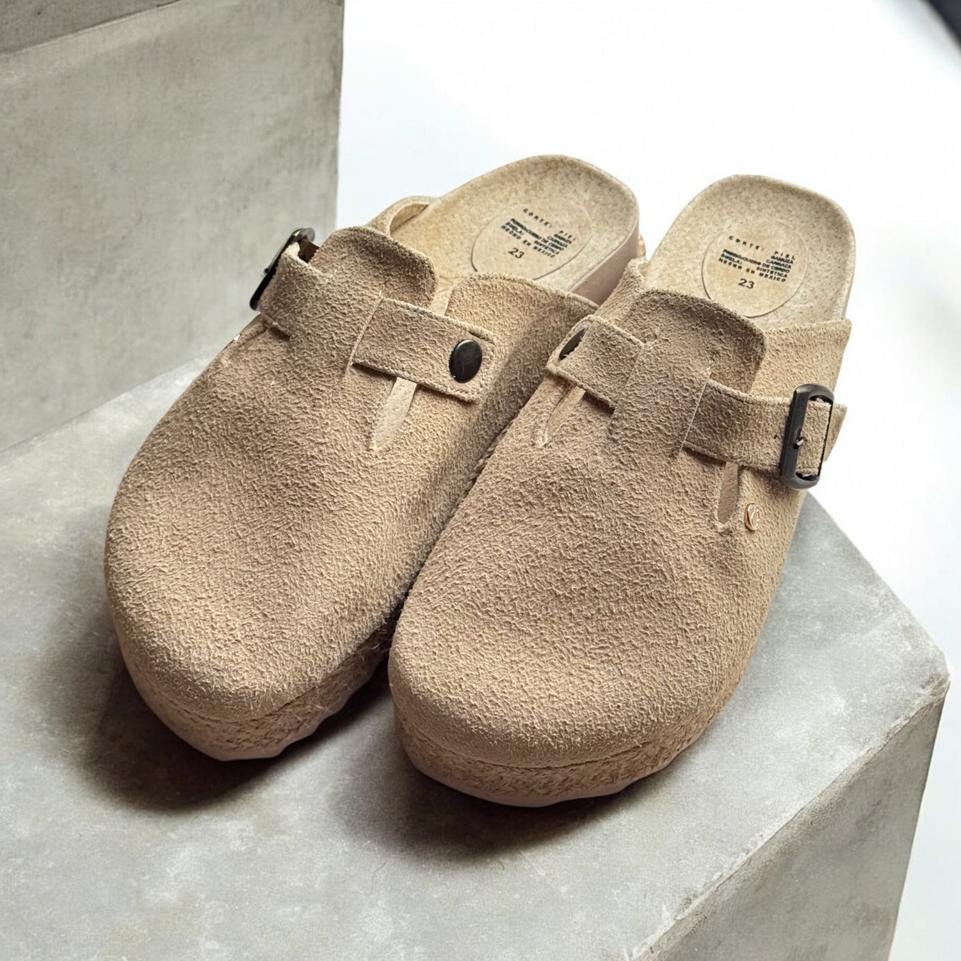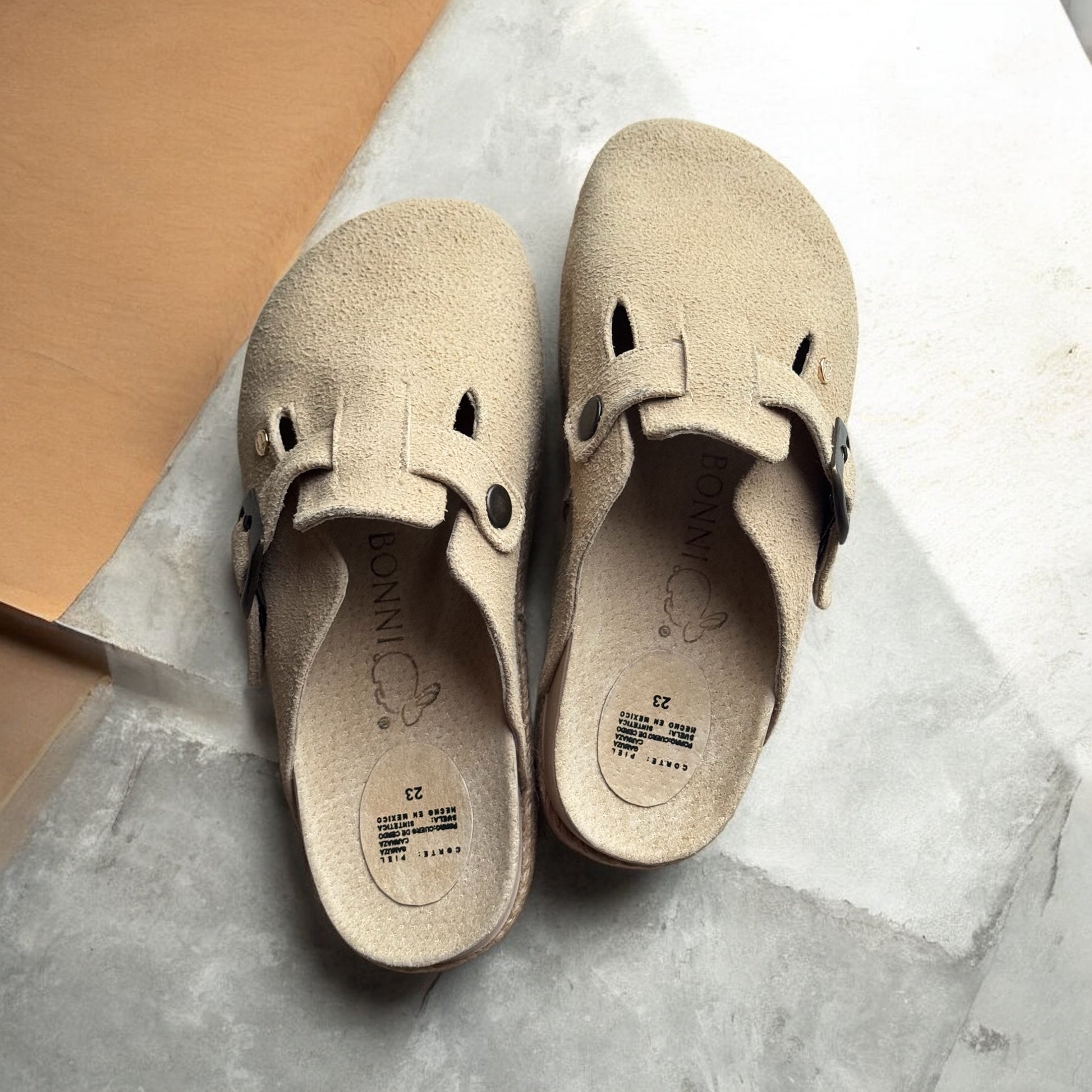We designed these BONNIS Plats to achieve a fresh, original, and casual touch. These plats are 4.5 cm high and feature a beautiful jute design on the platform. They have an adjustable buckle for extra space and comfort, as well as a wraparound design that prevents bumps and chafing on the foot.