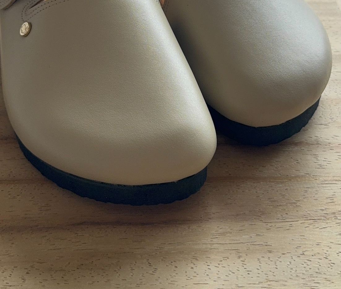 Piel corteza de cerdo. Resistente y duradera que permite el uso prolongado sin desgastarse o desmoronarse. Su transpirabilidad hace que el pie se mantenga fresco y ventilado. No hace que el pie tenga mal olor.